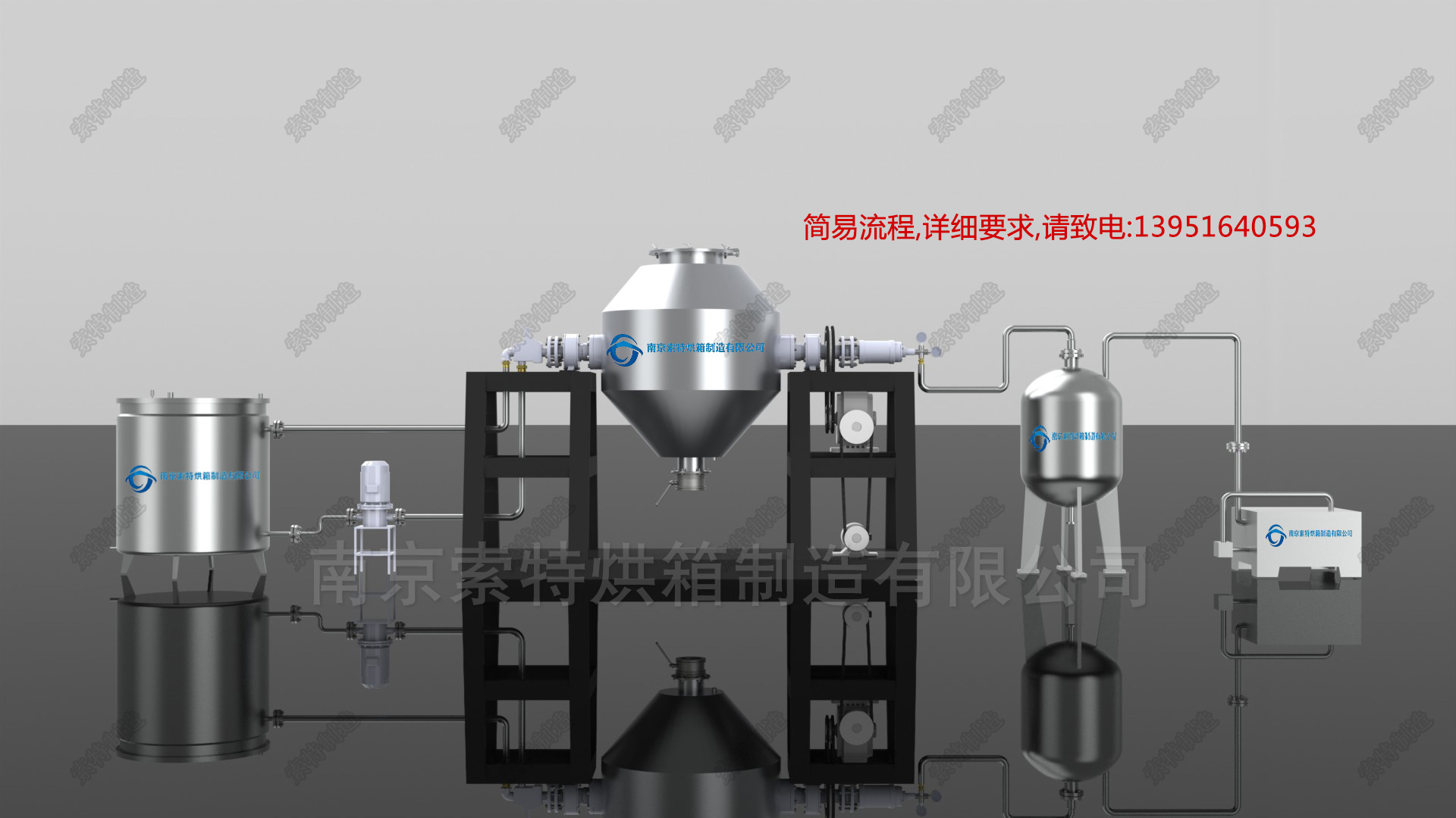 本機(jī)結(jié)構(gòu)由雙錐桶體,支架、真空進(jìn)料,人孔,放空閥,手輪放料閥,變頻調(diào)速,傳動(dòng)電機(jī),支架外殼,冷凝回收系統(tǒng),電器控制系統(tǒng),雙錐桶體采用304或316L不銹鋼制作,厚度δ3--12mm,錐體用料厚度與設(shè)備容積大小而定。支架外殼采用優(yōu)質(zhì)不銹鋼制作,厚度δ1.2---1.5mm,支架為8---20#槽鋼制作,出料蝶閥¢100---600mm,進(jìn)料口¢320---600mm,為快裝卡箍式。電機(jī)功率:0.75---18.5KW。設(shè)備主軸采用HS-XF-系列、旋轉(zhuǎn)接頭、密封效果良好不漏真空、熱水、蒸氣、導(dǎo)熱油,冷凝回收有:冷凝器2㎡---30 ㎡,冷凝罐0.05---2.5m3,儲(chǔ)液罐組成。冷凝器分立管式,螺旋盤管式。